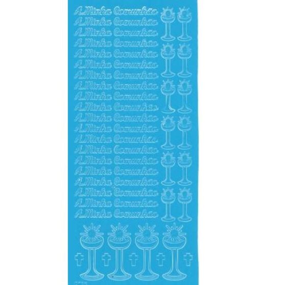 AUTOCOLANTE AZUL – “A minha Comunhão” 20 frases + 12 cálices pequenos, 4 cálices grandes, 5 cruzes pequenas.