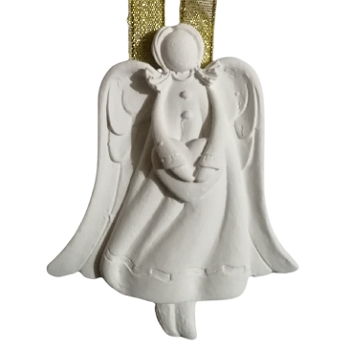 Anjo com Coração gesso perfumado, com fragrância de Flores Frescas, embalado em saquinho de organza. além disso leva uma fita de organza dourada, que serve para pendurar em qualquer lugar da casa que deseje perfumar. Além disso trata-se de uma prendinha de Natal original ou para o dia de Aniversário, 10×8×1,5 cm.