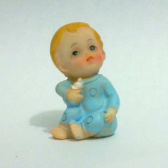 BONECOS EM RESINA – MENINO SENTADO – ENFEITES PARA CONVITES, PRENDINHAS DE BATIZADO, BRINDES, BOLOS, CAIXAS, – medida 3,5 x 2 x 2 cm