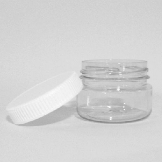 Boiao PET 50 ml transparente. Unidade. Frasco PET 50ml boca larga cilíndrico transparente com tampa branca.