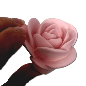 Rosa em gesso colorido (rosa pastel) e perfumado (aroma Rosa Creme), tamanho: diâmetro 6 cm, altura 5 cm