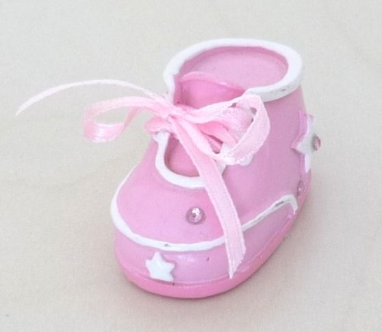 Botinha rosa em resina 5×3 cm com fitinha de cetim. Proprio para prendinhas de batizado