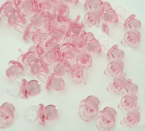 .Chupetas pequenas em acrílico (plástico) Rosa – pac 10 – 1×2 cm
