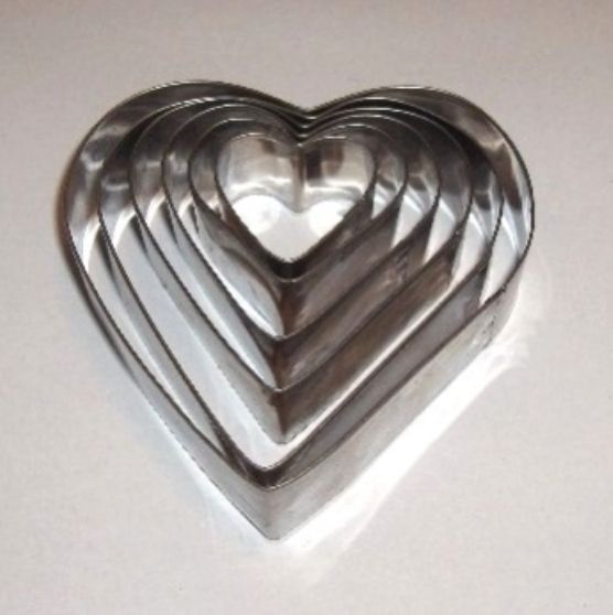 CORTADORES CORAÇÕES – CONJUNTO DE 6 TAMANHOS DIFERENTES: 8,5 CM, 7,5 CM, 6,5 CM, 5,5 CM, 4 CM E 3 CM