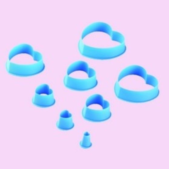 CORTADORES CORAÇÕES – CONJUNTO 8 UNIDADES – INDICADO PARA CORTAR MASSA AMERICANA, MASSA DE MODELAR, BISCUIT, FIMO, ETC