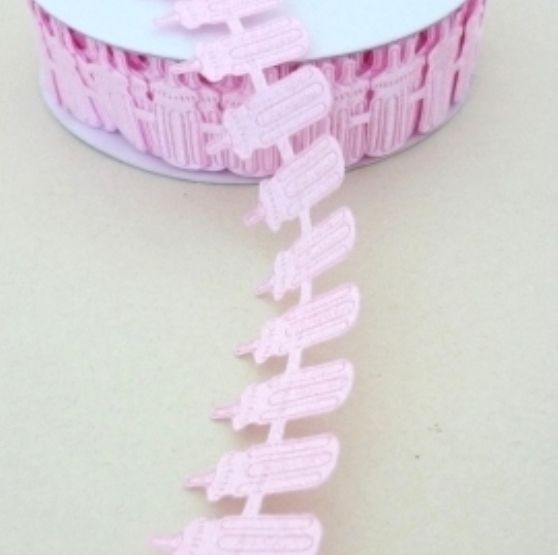 Fita Biberons Acetinada, Rosa 2 cm. Própria para enfeitar prendinhas batizado, menina. Metro