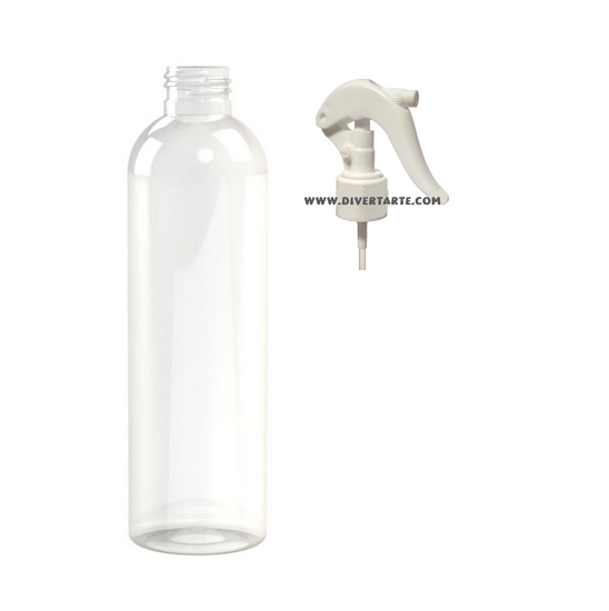Frasco PET 250 ml transparente alto tampa spray pistola branca