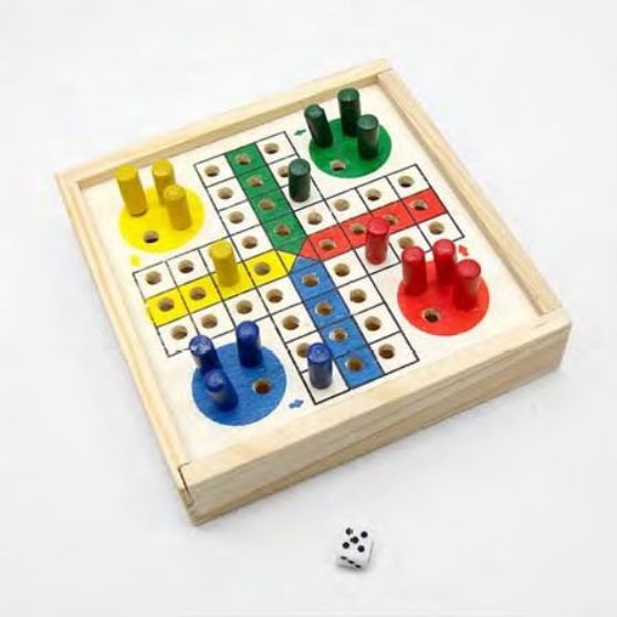 JOGO LUDO MINIATURA COM CAIXINHA EM MADEIRA.10X10CM
