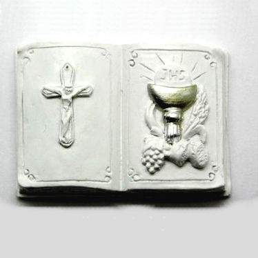 Molde de Silicone livro com cruz e cálice. Medida da peça pronta 5,5×4 cm
