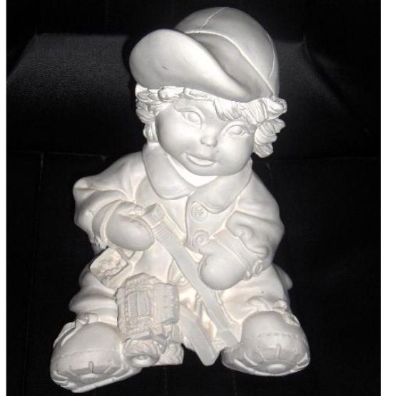 PEÇA DE GESSO PARA PINTAR – MENINO SENTADO A BRINCAR COM CARRINHO 23X18X17CM