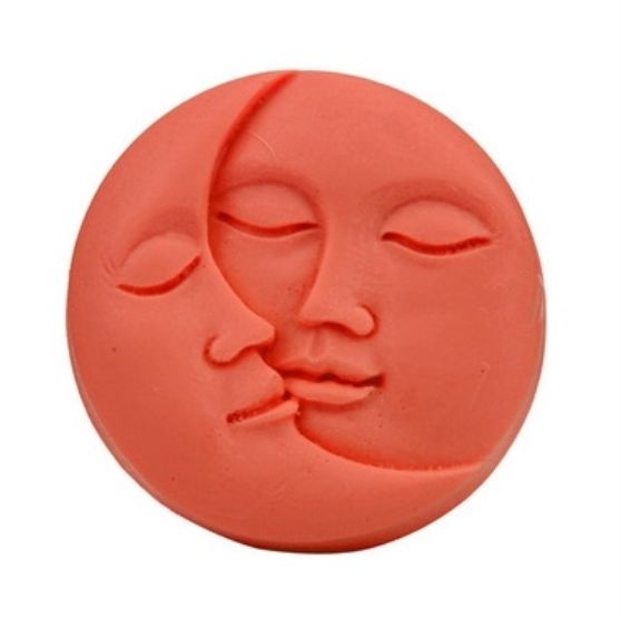 Figura redonda, 2D, e na superfície aparecem em relevo silhueta da lua e do sol unindo os lábios. Estes moldes também podem ser usados para fazer gessos e aromatizadores sol e lua.