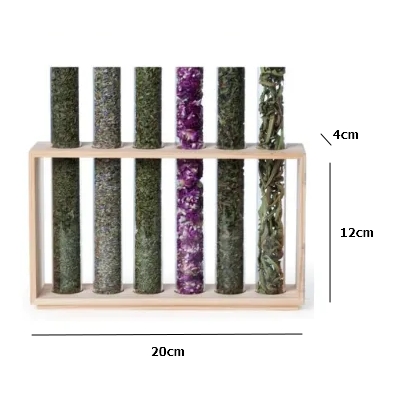 Suporte formato estante, medida aproximada 20x12x4cm, para 6 Tubos de ensaio com 1,8cm a diâmetro x 18cm de altura e também tubos de 15x2cm e 20x2cm