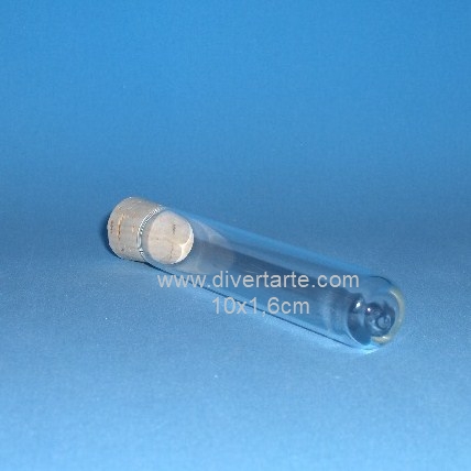 Tubo de ensaio de vidro transparente, Alt 10cm x 1,6 cm. Rolha de cortiça. 13ml – pac 20 unidades