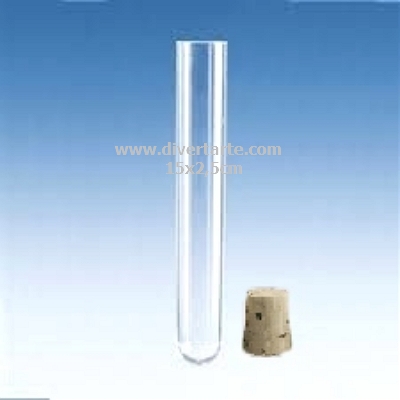 Tubo de ensaio 15X2,5 cm – Tubo em vidro com rolha de cortiça.